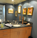 The best of modern baths embody simplicity in high design, while integrating user’s daily use in mind. Linear design aspects become dominate and present storage challenges. Yet, with our creative, high-end custom cabinetry, there are several solutions offered to create storage for our client’s unique & personal needs. Carrying a large selection of bath fixtures allows our clients to feel the range of products we carry to match their individual tastes.