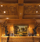 Wood’s natural warmth in color and texture is enhanced when its use is introduced as wall and ceiling coverings. Dressing a room in the full spirit of wood announces stability and a sense of distinguished, refined tastes. Seen in libraries, dining areas and bedrooms, wall and coffered ceilings enhance the volume of any room with an old world character.