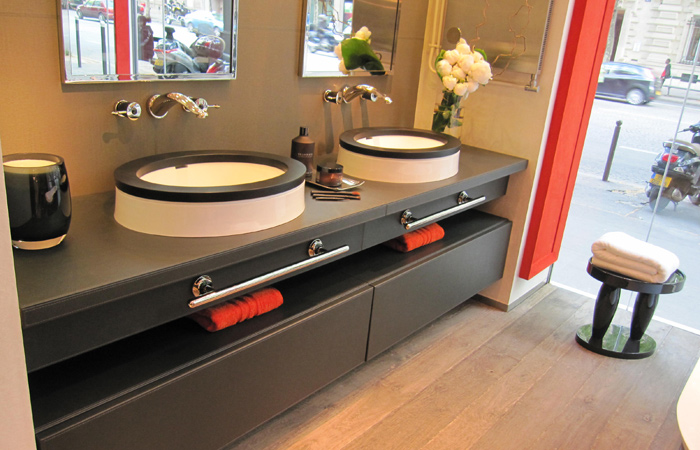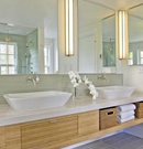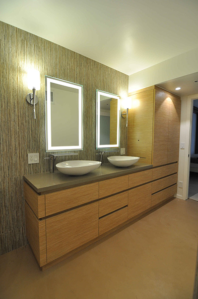 The best of modern baths embody simplicity in high design, while integrating user’s daily use in mind. Linear design aspects become dominate and present storage challenges. Yet, with our creative, high-end custom cabinetry, there are several solutions offered to create storage for our client’s unique & personal needs. Carrying a large selection of bath fixtures allows our clients to feel the range of products we carry to match their individual tastes.