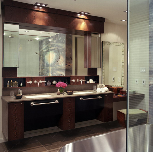 The best of modern baths embody simplicity in high design, while integrating user’s daily use in mind. Linear design aspects become dominate and present storage challenges. Yet, with our creative, high-end custom cabinetry, there are several solutions offered to create storage for our client’s unique & personal needs. Carrying a large selection of bath fixtures allows our clients to feel the range of products we carry to match their individual tastes.