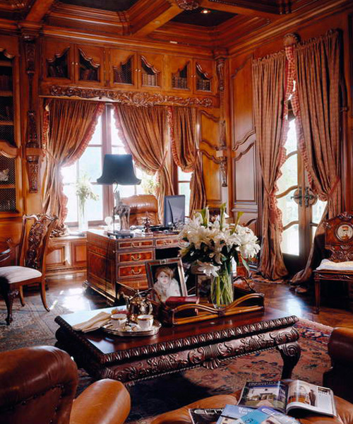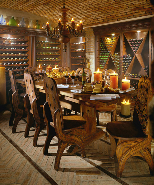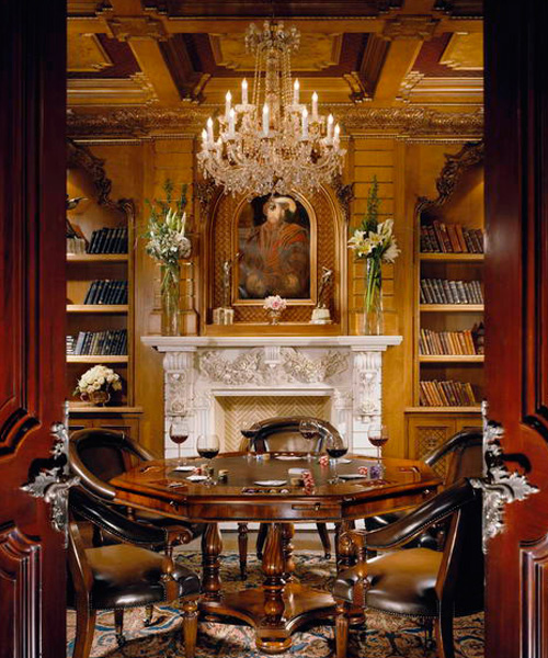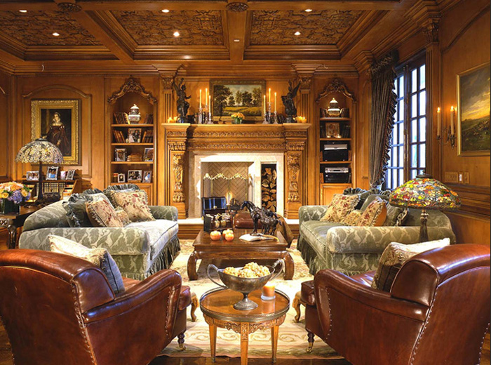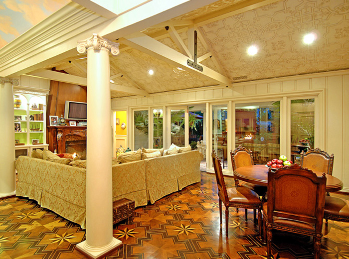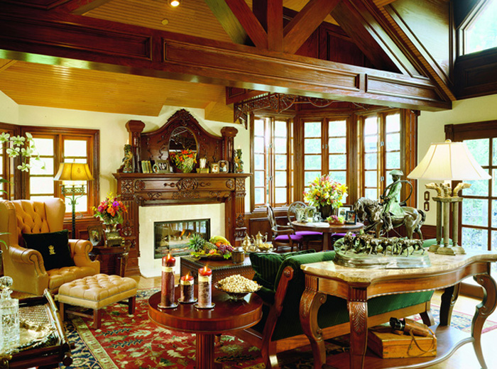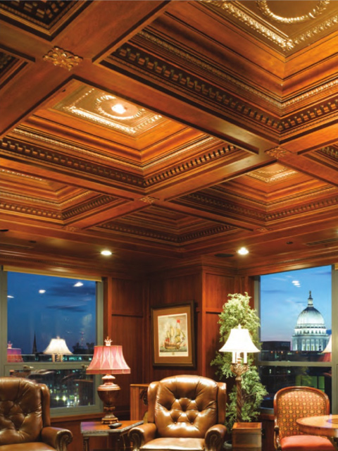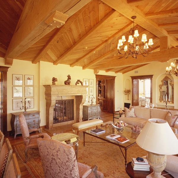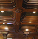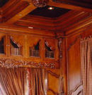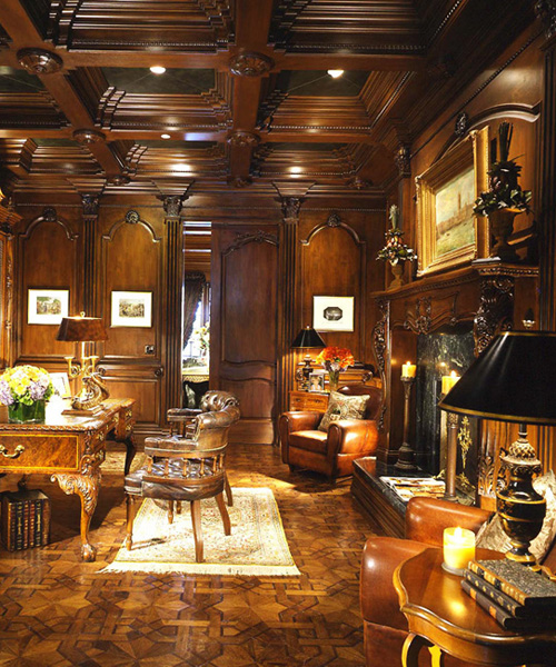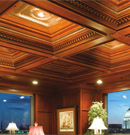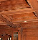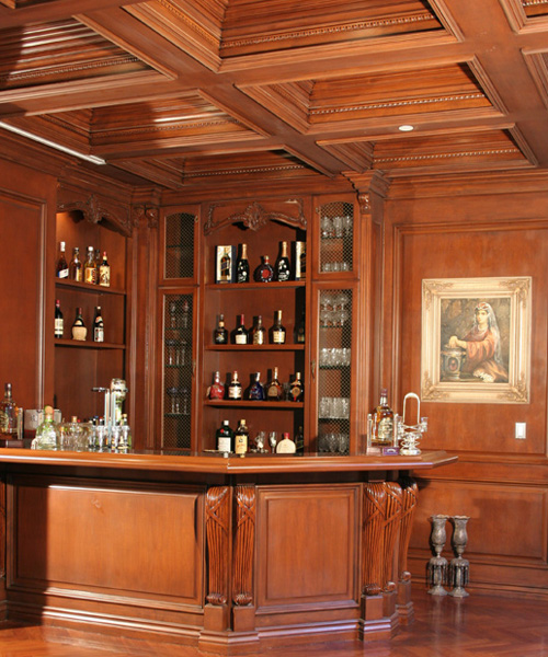 Wood’s natural warmth in color and texture is enhanced when its use is introduced as wall and ceiling coverings. Dressing a room in the full spirit of wood announces stability and a sense of distinguished, refined tastes. Seen in libraries, dining areas and bedrooms, wall and coffered ceilings enhance the volume of any room with an old world character.